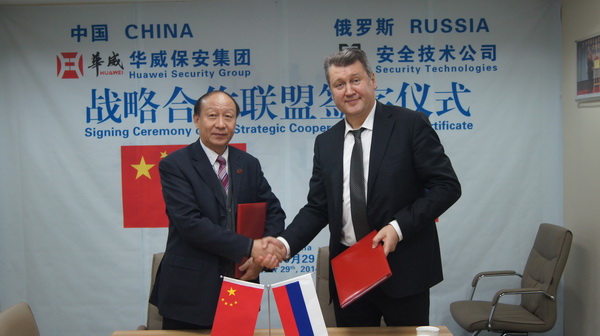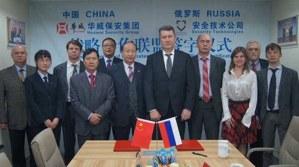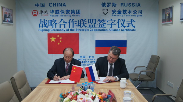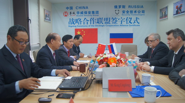 10月29日,山東華威保安集團(tuán)與俄羅斯國家技術(shù)集團(tuán)安全技術(shù)公司在北京簽訂戰(zhàn)略合作協(xié)議。公司董事長、總裁荀金慶、獨(dú)立董事、高級(jí)顧問蔣曉明、總裁助理孔令東、行政總監(jiān)仙文與俄技集團(tuán)安全技術(shù)公司總經(jīng)理符拉迪米爾·卡皮絲、俄技集團(tuán)保安司司長米克黑爾·米圖伊克、俄技集團(tuán)駐華總代表、俄羅斯駐華商務(wù)副代表阿列克賽·格利申、俄技北京代表處首席工程師德米特里伊·雷日托夫等人共同出席了簽約儀式。