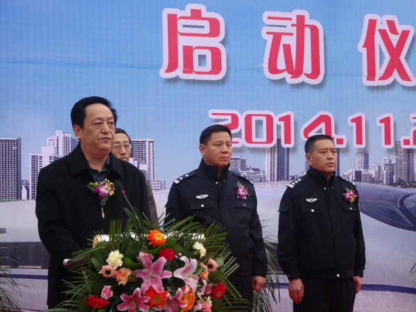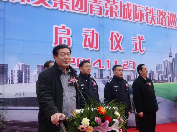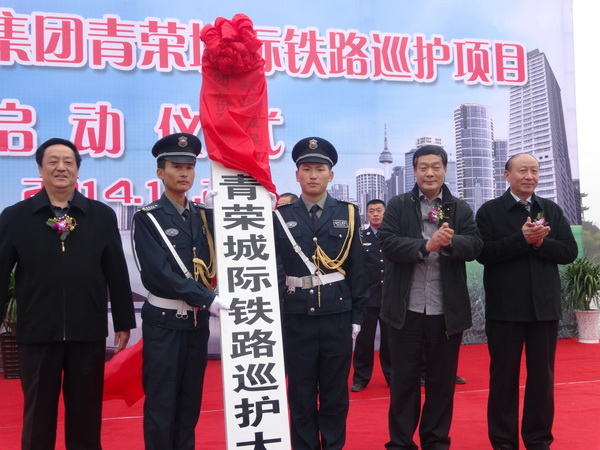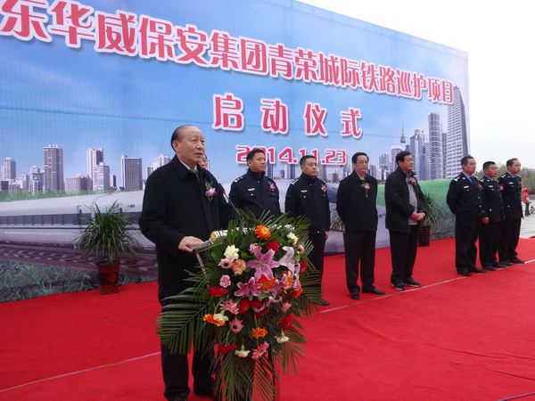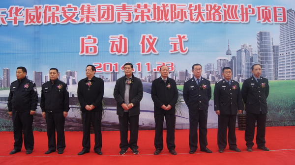 在青榮城際鐵路開通之際,山東華威保安集團承接了其300公里鐵路沿線的安全巡護工作。11月23日下午, 青榮城際鐵路巡護項目啟動儀式在青島萊西市月湖廣場隆重舉行。濟南鐵路公安局副局長丁首都、青榮城際鐵路有限責(zé)任公司黨委書記胡風(fēng)林、濟南鐵路公安局治安處副處長鄭華、青島鐵路公安處治安支隊支隊長劉金鑒以及山東華威保安集團董事長、總裁荀金慶、黨總支副書記李曉虎等有關(guān)領(lǐng)導(dǎo)出席啟動儀式,150余名巡護隊員代表參加。