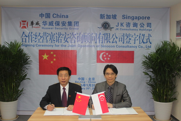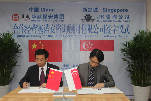 山東華威保安集團(tuán)與新加坡JK咨詢(xún)控股公司合作經(jīng)營(yíng)北京塞諾安咨詢(xún)顧問(wèn)有限公司協(xié)議在北京簽訂。